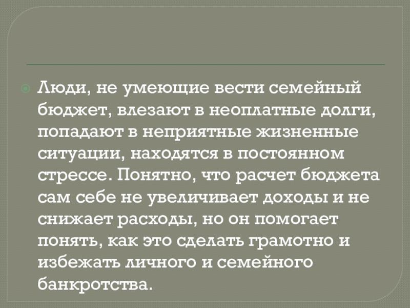 Слайд 10Люди, не умеющие вести семейный бюджет, влезают в неоплатные долги, попадают