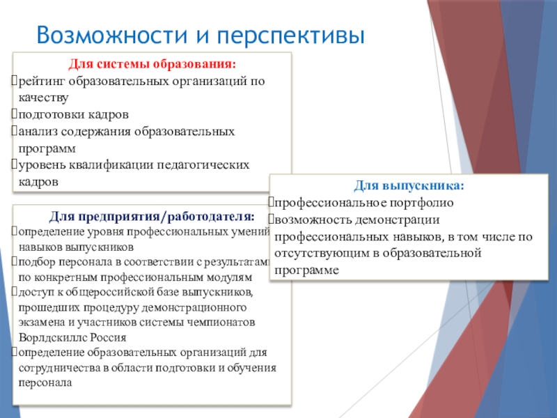 доступ к общероссийской базе выпускников, прошедших процедуру демонстрационного экзамена и участников системы чемпионатов Ворлдскиллс Россия