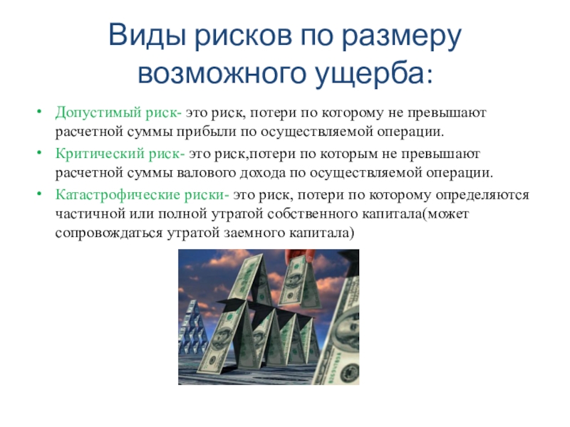 Слайд 9Виды рисков по размеру возможного ущерба: