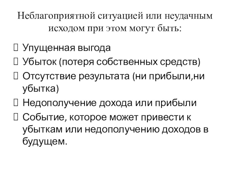 Слайд 3Неблагоприятной ситуацией или неудачным исходом при этом могут быть: