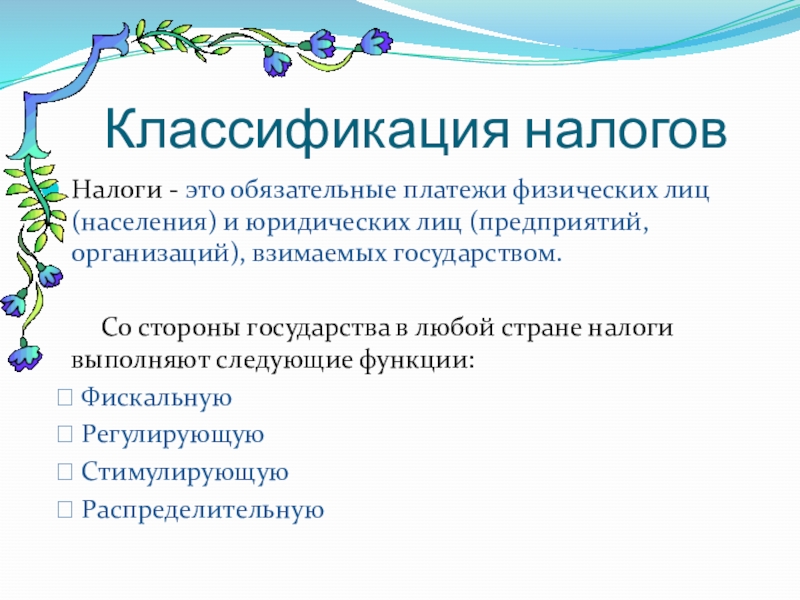 (населения) и юридических лиц (предприятий, организаций), взимаемых государством.