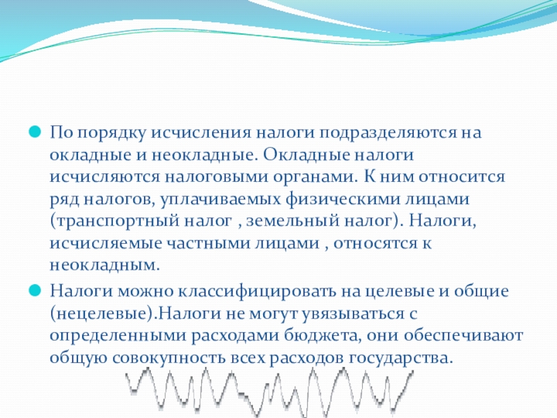 Слайд 10По порядку исчисления налоги подразделяются на окладные и неокладные. Окладные налоги