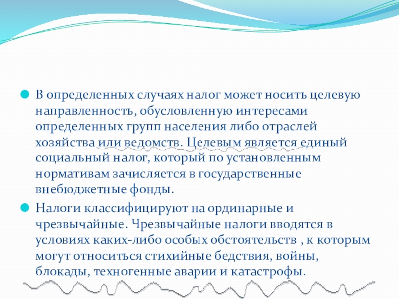 Слайд 11В определенных случаях налог может носить целевую направленность, обусловленную интересами определенных