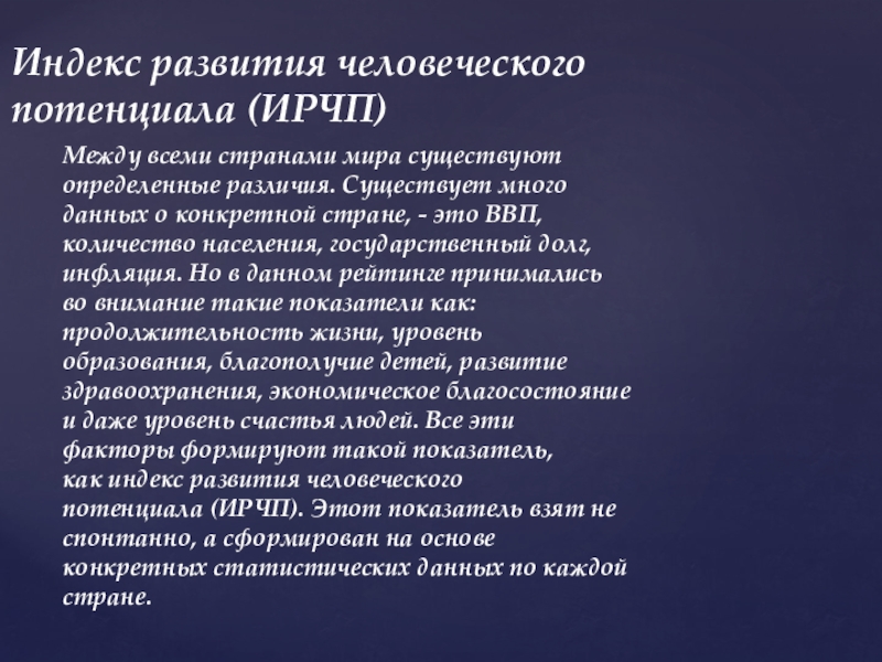 Индекс развития человеческого потенциала (ИРЧП)