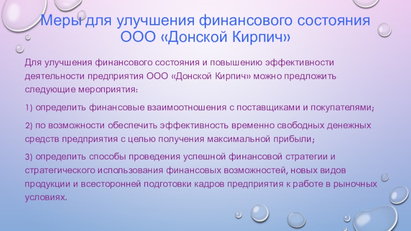 Изучить теоретические аспекты финансового состояния предприятия, провести анализ финансового состояния предприятия, выявить резервы и предложить мероприятия по повышению финансовой устойчивости предприятия.