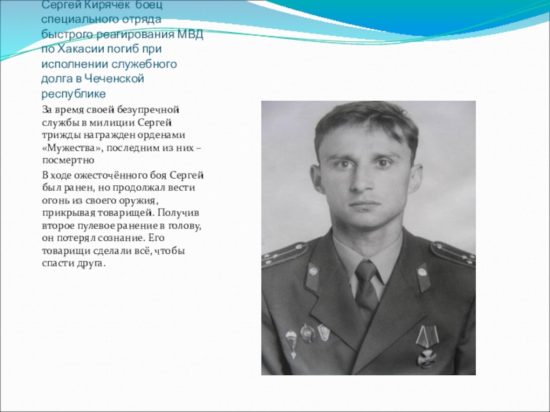 За время своей безупречной службы в милиции Сергей трижды награжден орденами «Мужества», последним из них – посмертно
