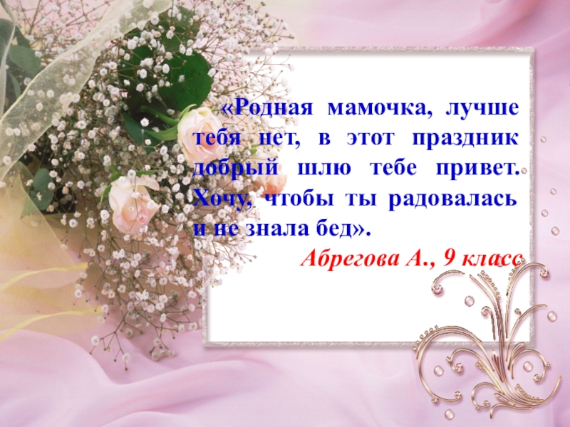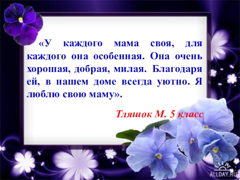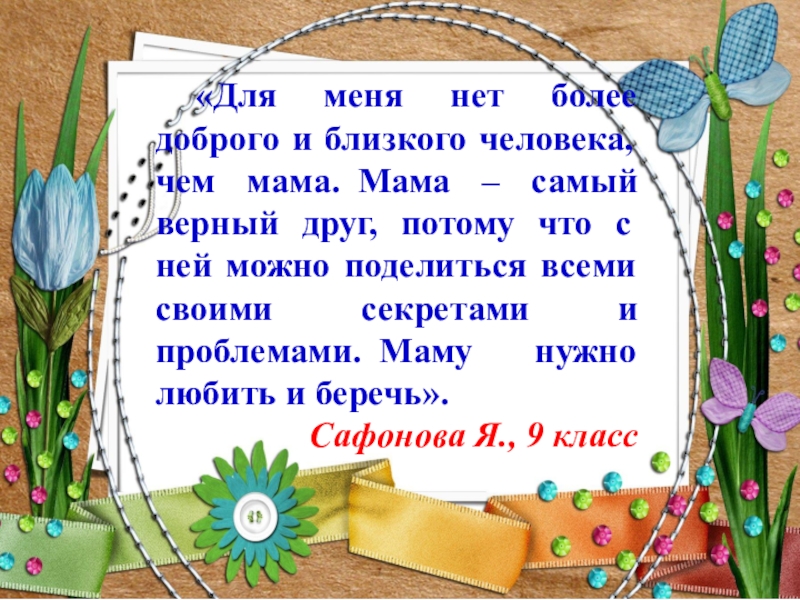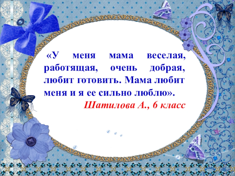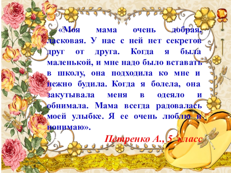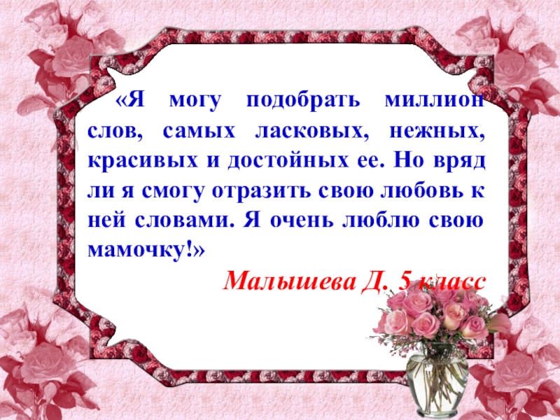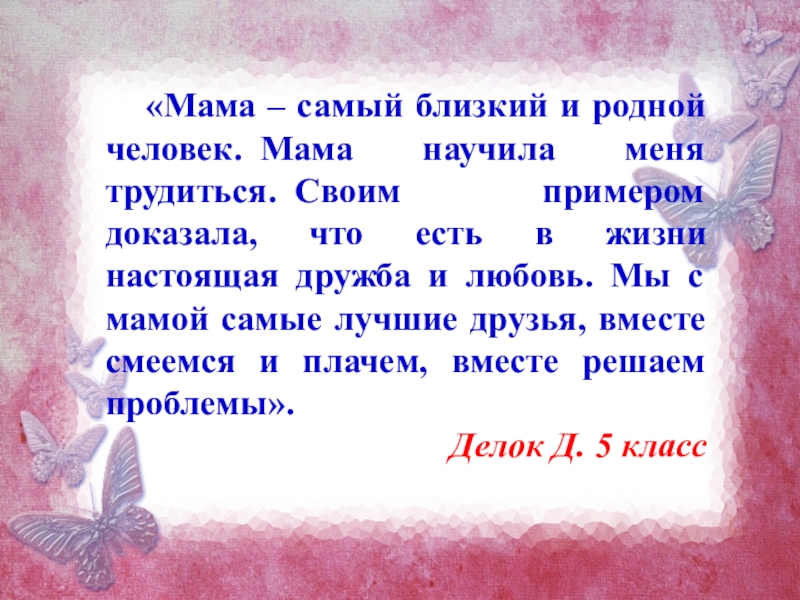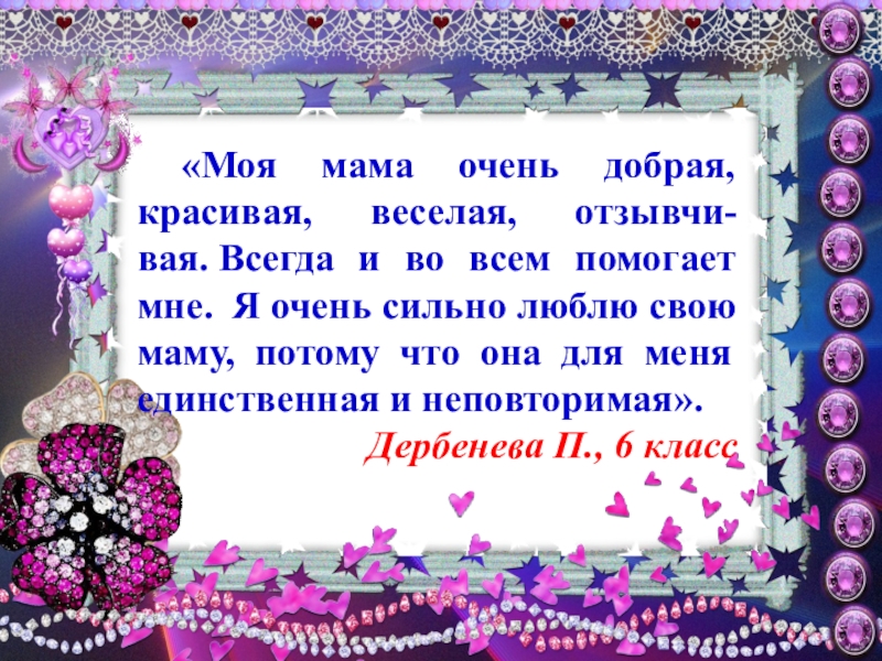 ее. Но вряд ли я смогу отразить свою любовь к ней словами. Я очень люблю свою мамочку!»