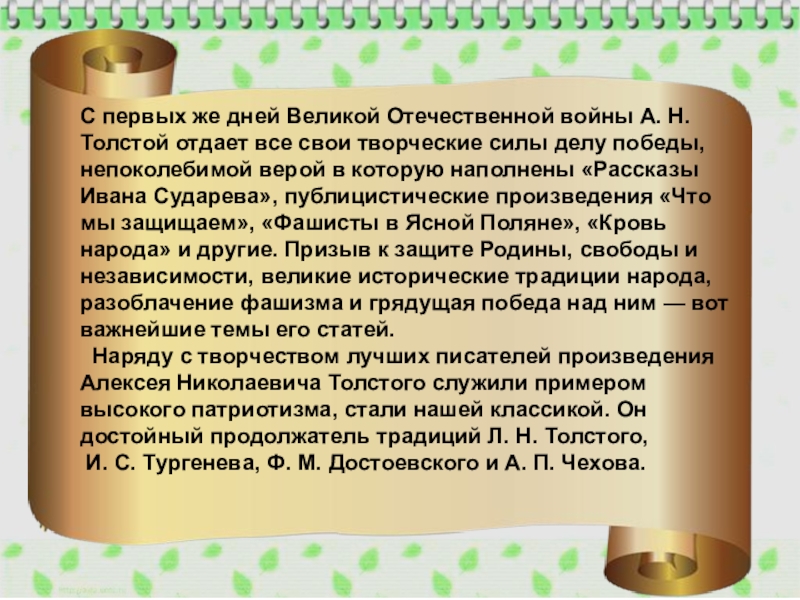 Это сайт презентаций, где можно хранить и обмениваться своими презентациями, докладами, проектами, шаблонами в формате PowerPoint с другими пользователями. Мы помогаем школьникам, студентам, учителям, преподавателям хранить и обмениваться учебными материалами.