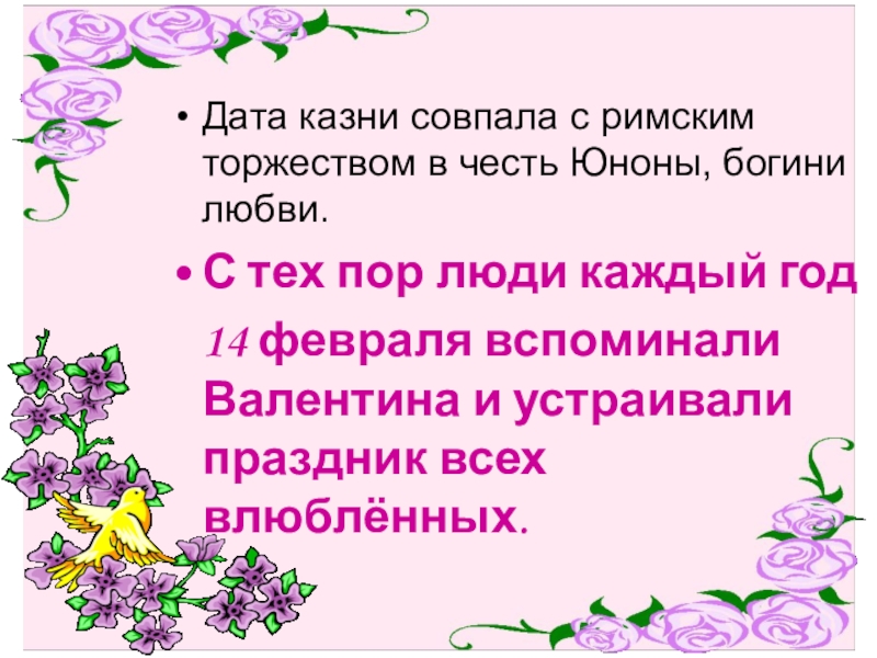 Слайд 6Дата казни совпала с римским торжеством в честь Юноны, богини любви.