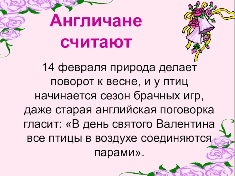 начинается сезон брачных игр, даже старая английская поговорка гласит: «В день святого Валентина все птицы в воздухе соединяются парами».