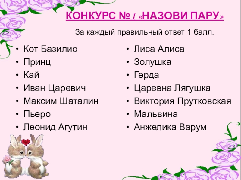 Слайд 8КОНКУРС №1 «НАЗОВИ ПАРУ»