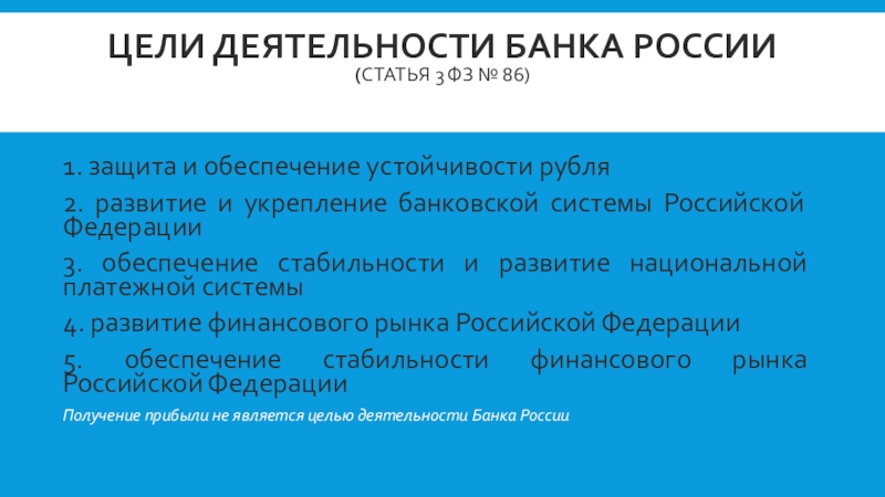 Слайд 14Цели деятельности Банка России (Статья 3 ФЗ № 86)