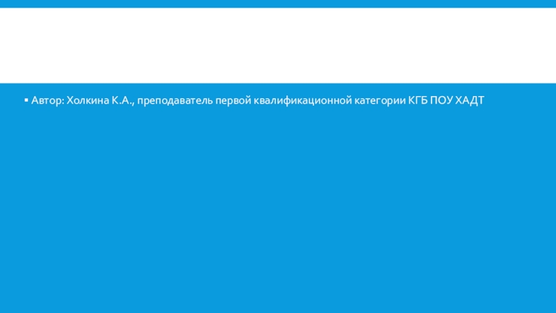 Слайд 2Автор: Холкина К.А., преподаватель первой квалификационной категории КГБ ПОУ ХАДТ