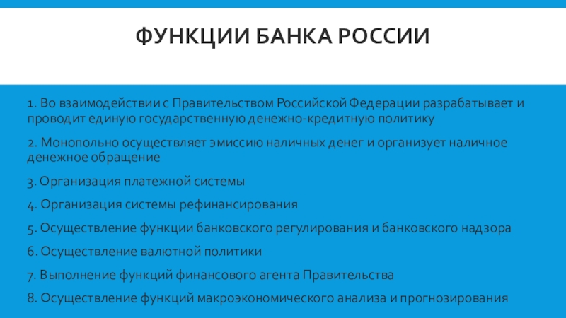 цели деятельности, функции и полномочия Центрального банка Российской Федерации