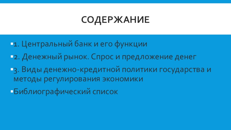 характеристика Центрального банка Российской Федерации, дана характеристика его функций, типы денежно-кредитной политики, теоретические аспекты ее разработки и реализации. Основное внимание уделено способам денежно-кредитного регулирования и инструментам денежно-кредитной политики Банка России.