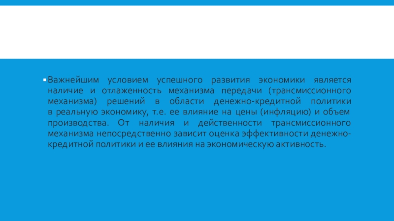 Слайд 44Важнейшим условием успешного развития экономики является наличие и отлаженность механизма передачи