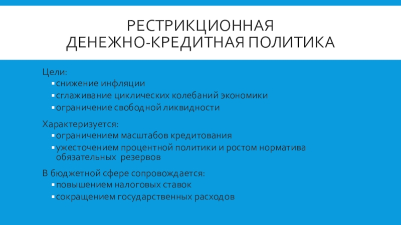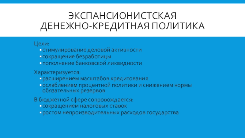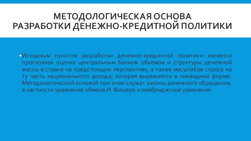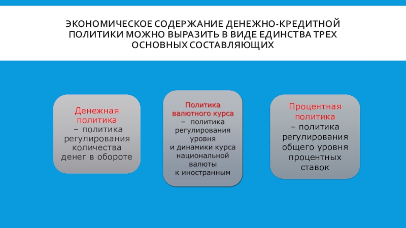 Слайд 39экономическое содержание денежно-кредитной политики можно выразить в виде единства трех основных