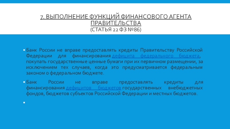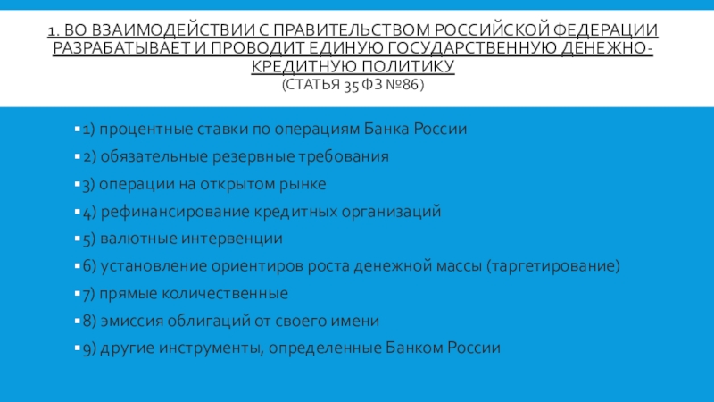 № 86-ФЗ «О Центральном банке Российской Федерации (Банке России)»