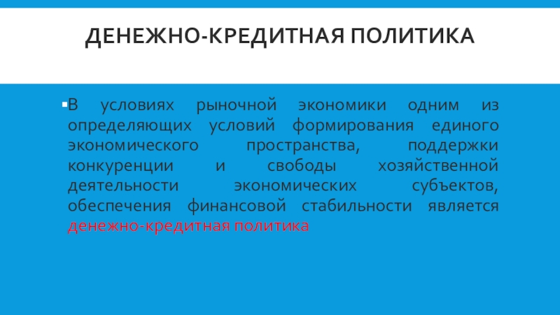 экономического пространства, поддержки конкуренции и свободы хозяйственной деятельности экономических субъектов, обеспечения финансовой стабильности является денежно-кредитная политика