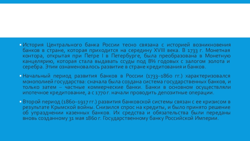 Слайд 7История Центрального банка России тесно связана с историей возникновения банков в
