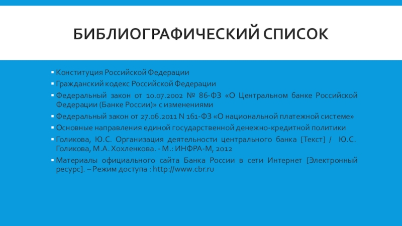 Материалы официального сайта Банка России в сети Интернет [Электронный ресурс]. – Режим доступа : http://www.cbr.ru