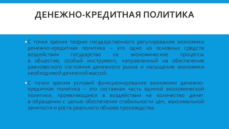 С точки зрения теории государственного регулирования экономики денежно-кредитная политика –