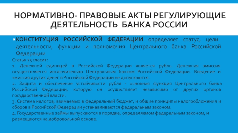 Слайд 11Нормативно- правовые акты регулирующие деятельность Банка России