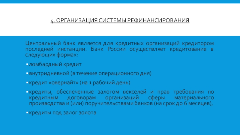 инстанции. Банк России осуществляет кредитование в следующих формах: