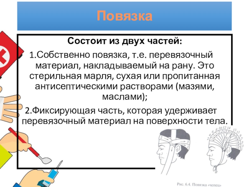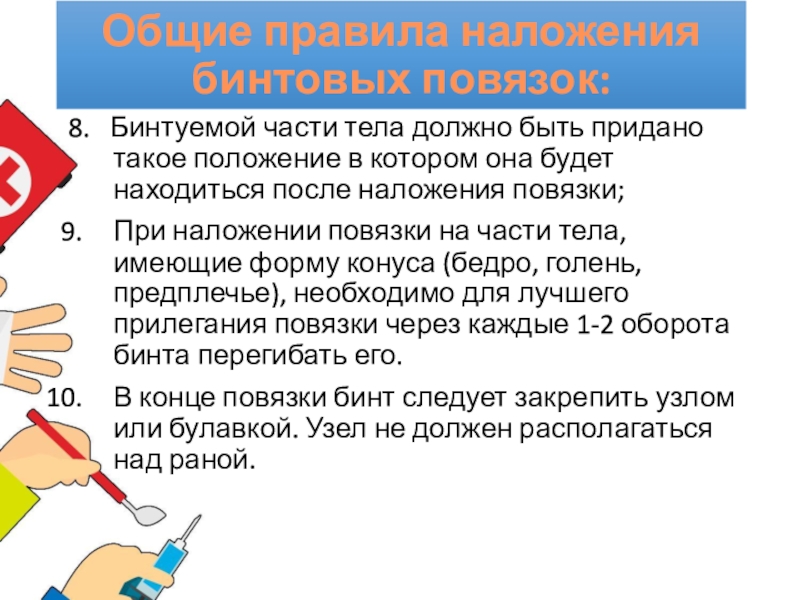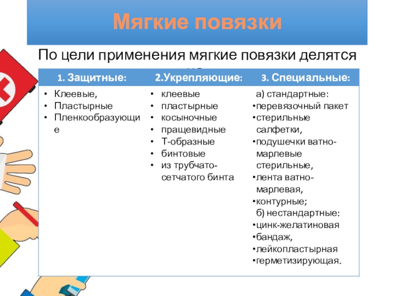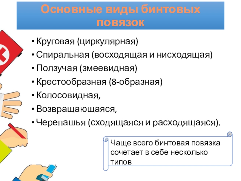 Чаще всего бинтовая повязка сочетает в себе несколько типов