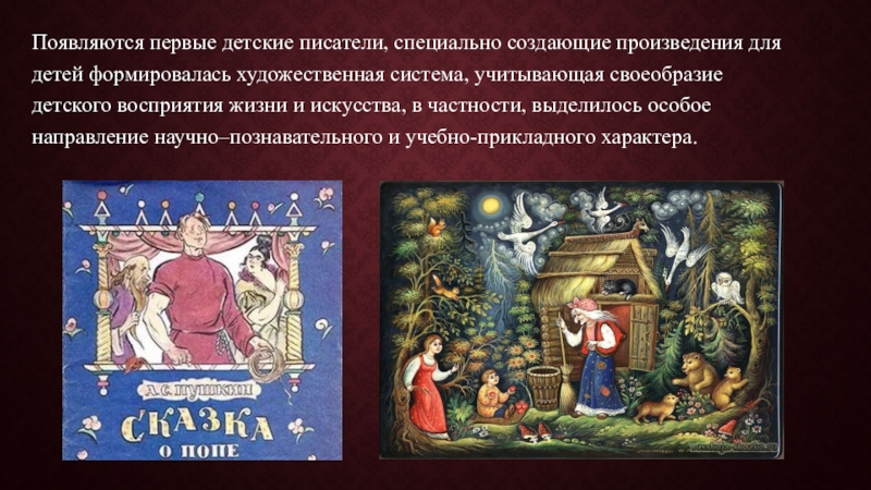 Слайд 3Появляются первые детские писатели, специально создающие произведения для детей формировалась художественная