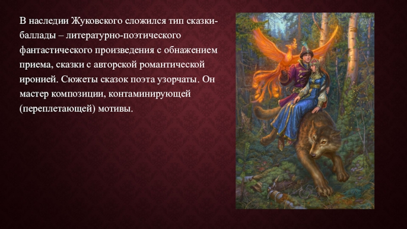 Слайд 24В наследии Жуковского сложился тип сказки-баллады – литературно-поэтического фантастического произведения с