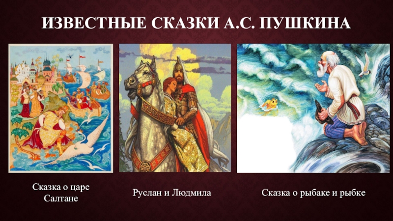 Слайд 17Известные сказки А.С. Пушкина