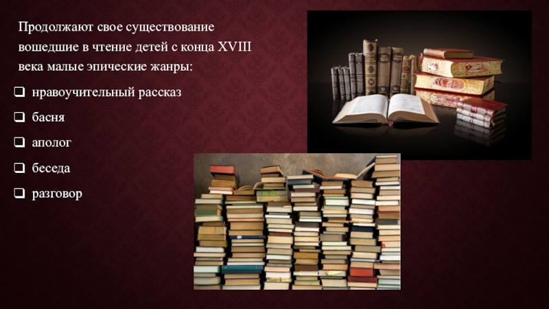 Слайд 5Продолжают свое существование вошедшие в чтение детей с конца ХVIII века