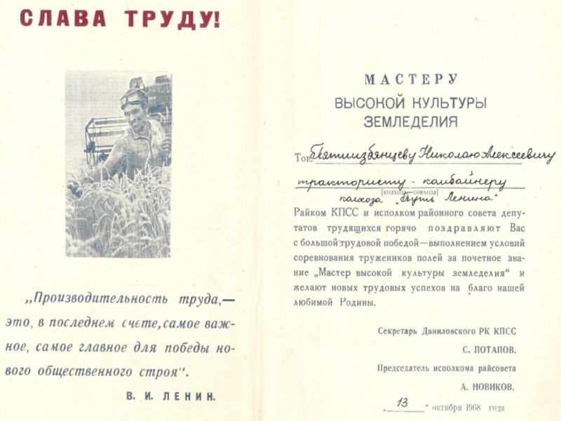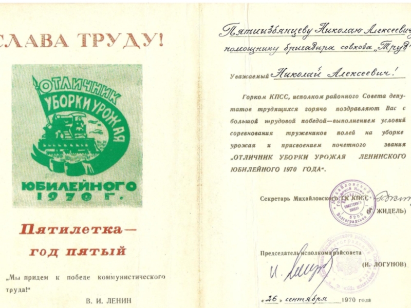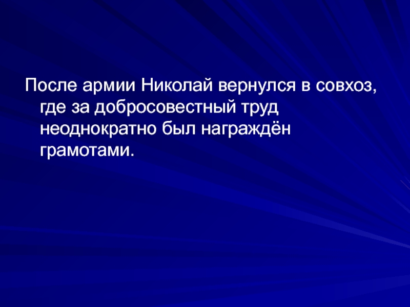 После армии Николай вернулся в совхоз, где за добросовестный труд неоднократно