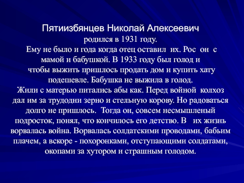 Слайд 7Пятиизбянцев Николай Алексеевич