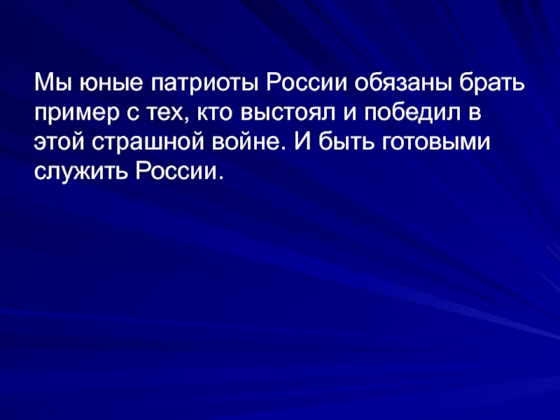 Слайд 26Мы юные патриоты России обязаны брать пример с тех, кто выстоял