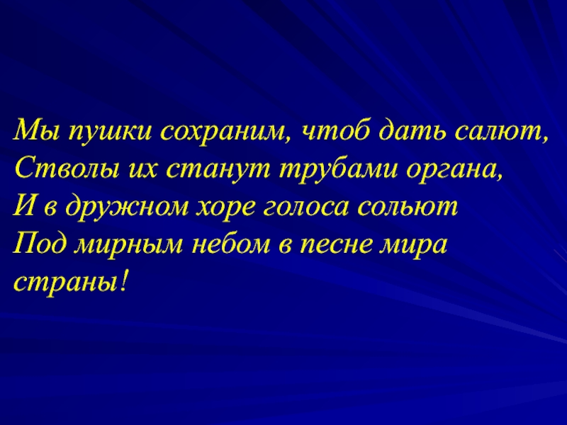 Слайд 29 Мы пушки сохраним, чтоб дать салют,