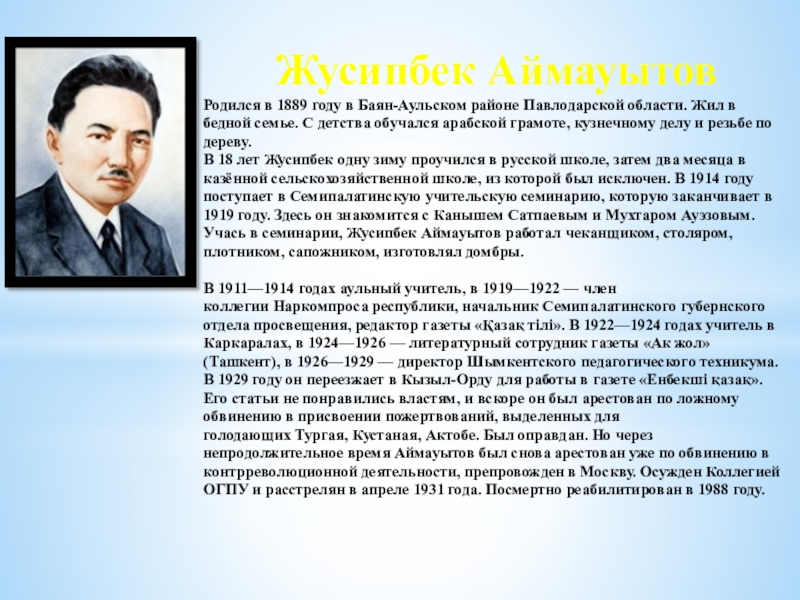 Слайд 1 Жусипбек Аймауытов