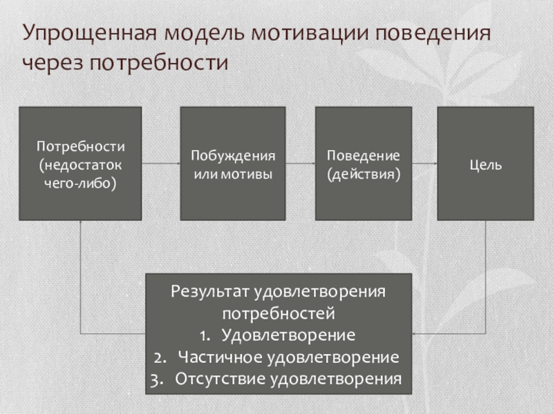 Слайд 12Упрощенная модель мотивации поведения через потребности