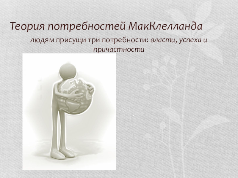Теория потребностей МакКлелландалюдям присущи три потребности: власти, успеха и причастности