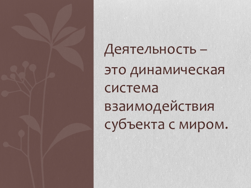 Деятельность – это динамическая система взаимодействия субъекта с миром.