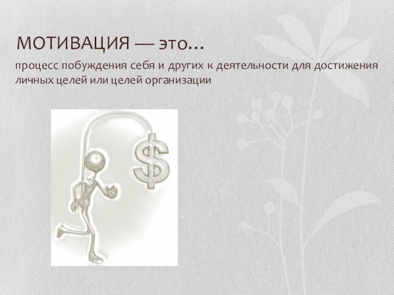 МОТИВАЦИЯ — это…процесс побуждения себя и других к деятельности для достижения личных целей или целей организации