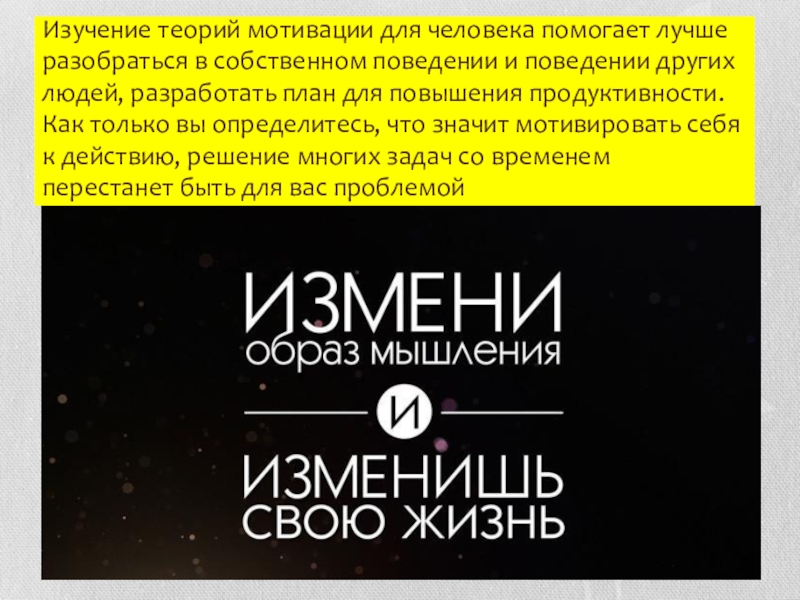 Слайд 32Изучение теорий мотивации для человека помогает лучше разобраться в собственном поведении