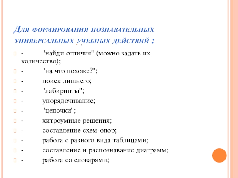 Слайд 6Для формирования познавательных универсальных учебных действий :