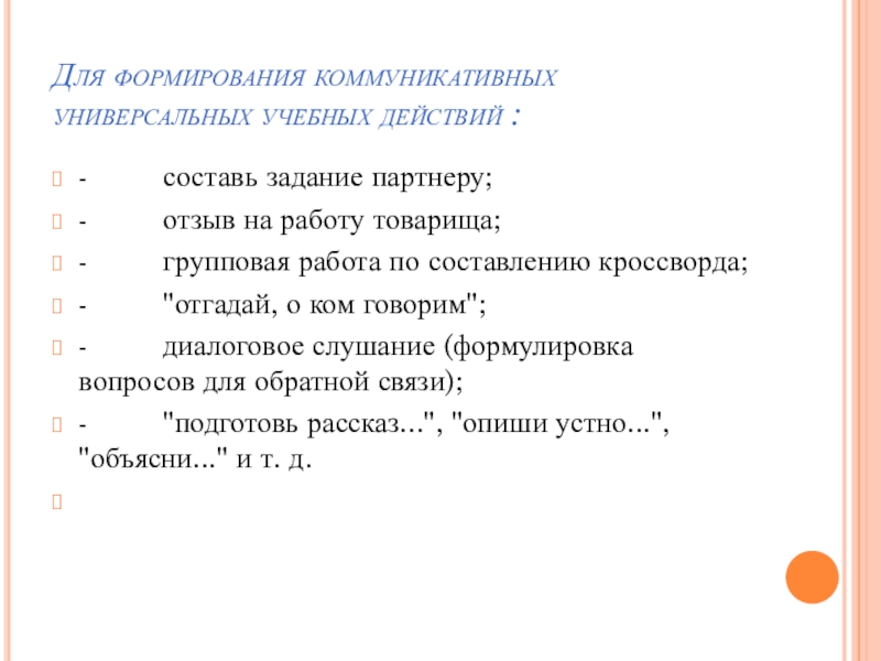 Слайд 8Для формирования коммуникативных универсальных учебных действий :