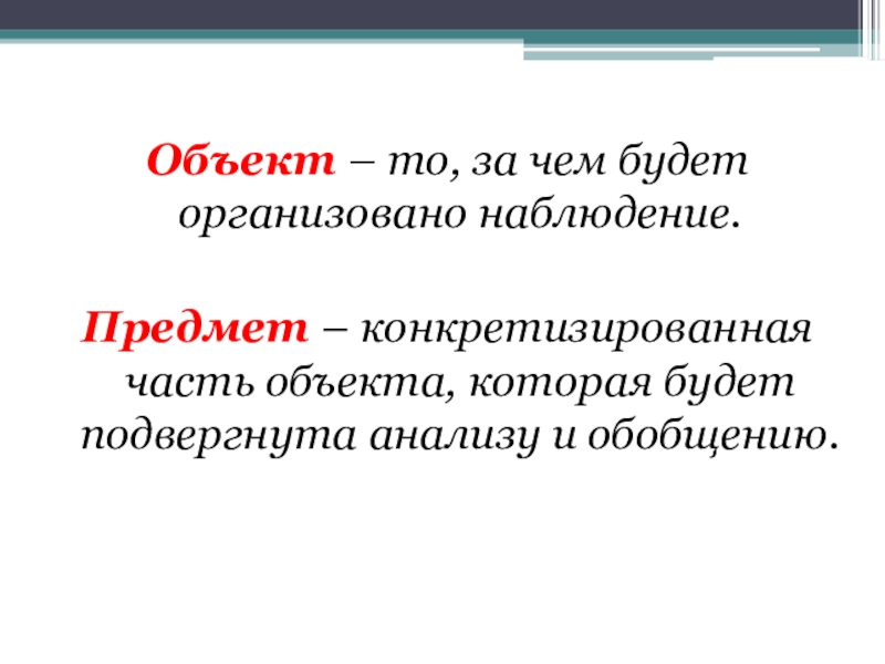 часть объекта, которая будет подвергнута анализу и обобщению.