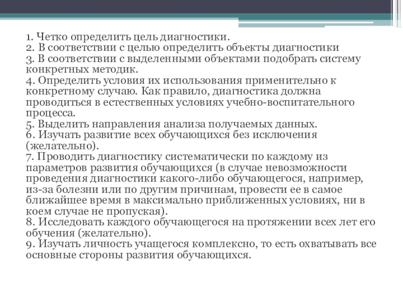8. Исследовать каждого обучающегося на протяжении всех лет его обучения (желательно).