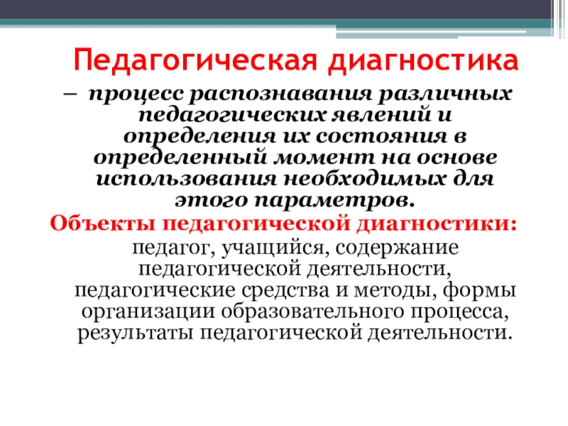 – процесс распознавания различных педагогических явлений и определения их состояния