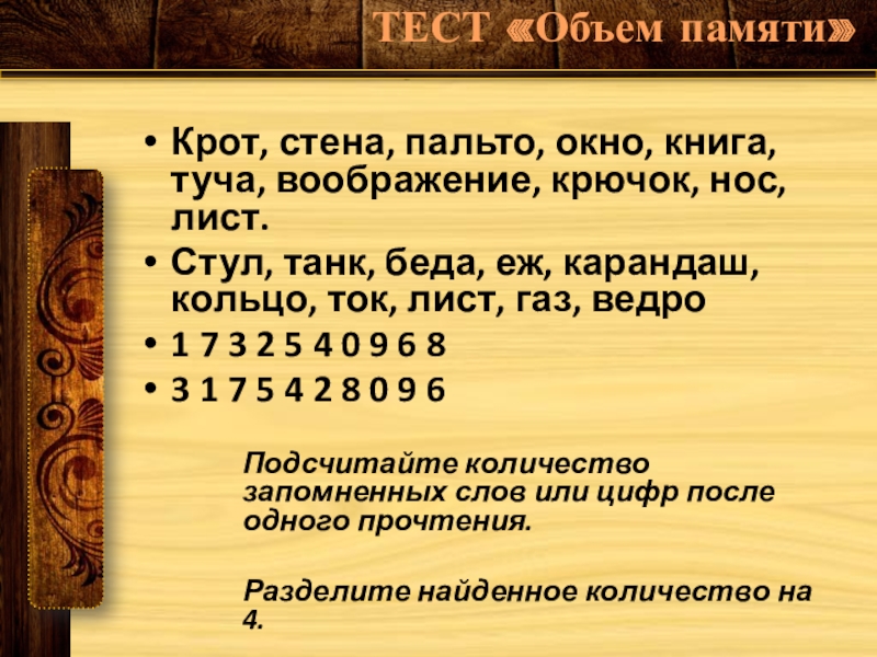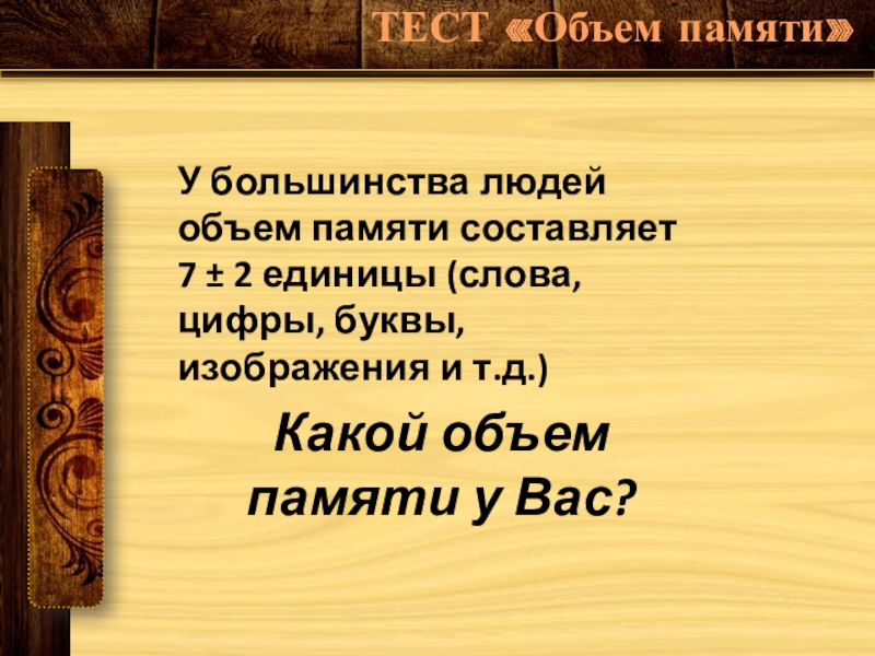 ТЕСТ «Объем памяти»