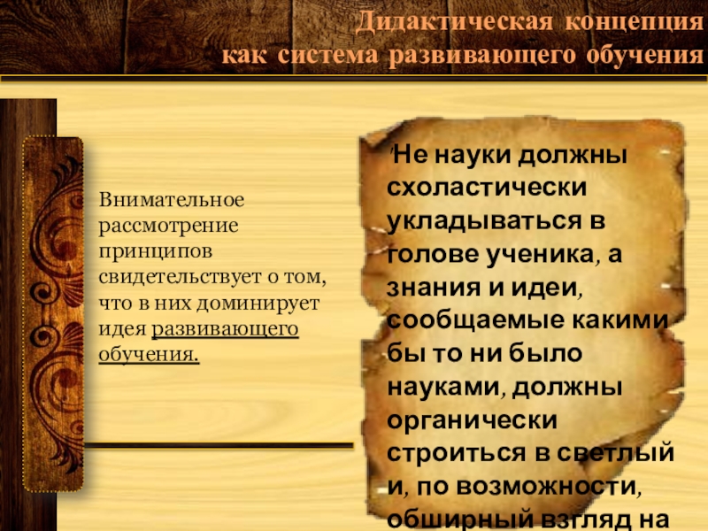 Внимательное рассмотрение принципов свидетельствует о том, что в них доминирует идея развивающего обучения.